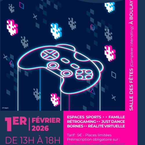 Afficher le planđ Dimanche 1er fĂ©vrier 2026 đ De 13h Ă 18h đ Salle des fĂȘtes de Boulay-Moselle La Ville de Boulay-Moselle organise une aprĂšs-midi jeux vidĂ©o, une expĂ©rience immersive et ludique, avec pas moins de 10 plateformes de jeux dont : đŸ jeux vidĂ©o đčïž rĂ©tro-gaming đ„œ rĂ©alitĂ© virtuelle âš et bien dâautres surprises ! đ EntrĂ©e : 5 ⏠đïž PrĂ©-paiement obligatoire â±ïž Une fois votre entrĂ©e payĂ©e, vous pouvez venir et repartir librement entre 13h et 18h. đšâđ©âđ§âđŠ ĂvĂ©nement tout public â petits et grands joueurs sont les bienvenus ! đą NâhĂ©sitez pas Ă partager et Ă venir jouer en famille ou entre amis !